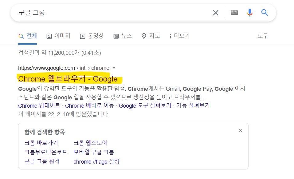 구글 검색창에 "크롬 다운로드"를 입력해주세요.