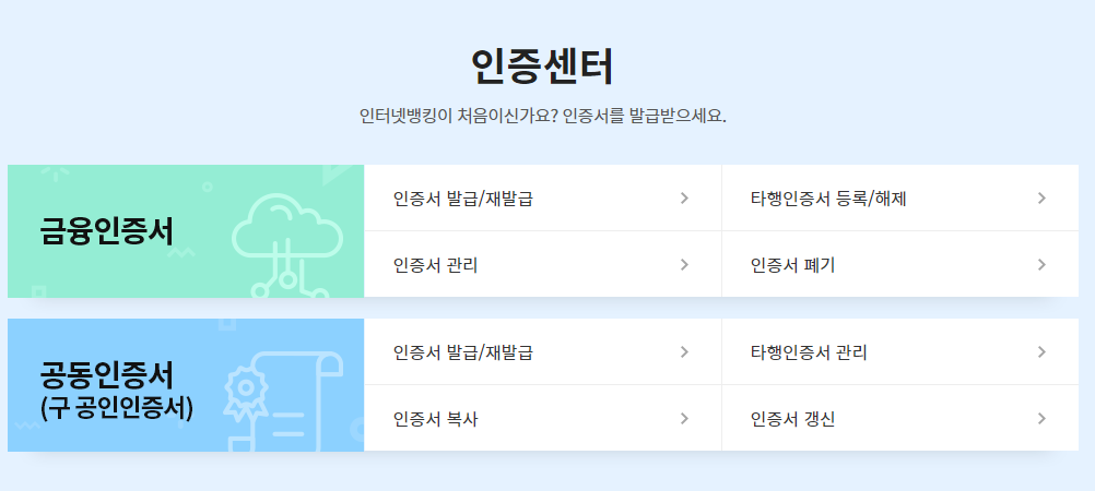 은행업무를 더 빠르게 이용하시기위해서는 공동인증서가 필요합니다.