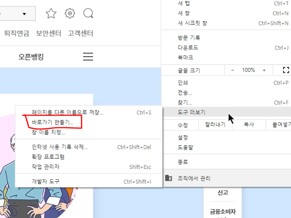 5. 바로가기를 클릭하셨다면 바로가기 만드는 팝업창이 뜹니다. '만들기'를 클릭해주세요