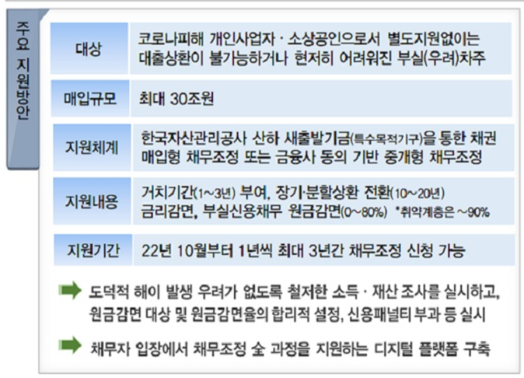 채무조정 프로그램 주요 지원방안